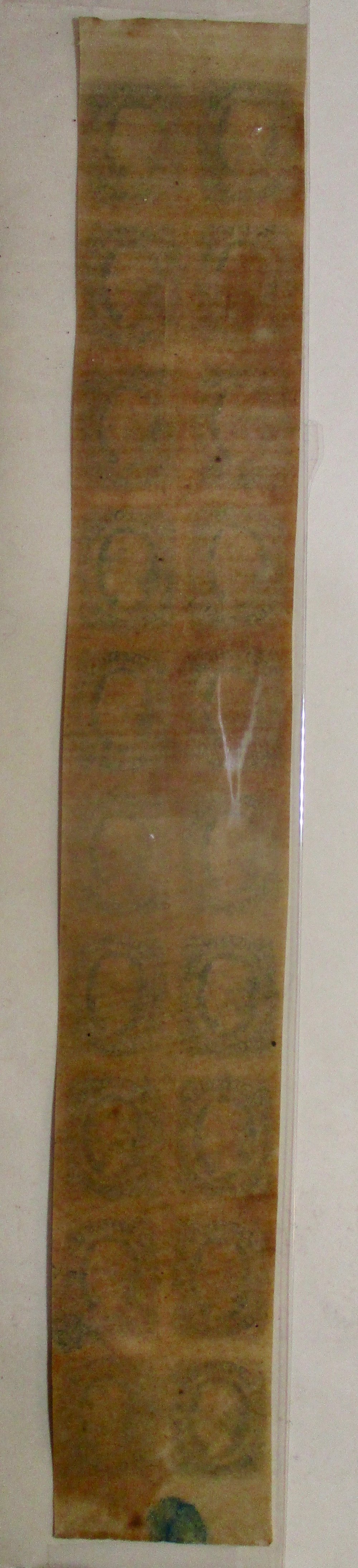 This strip is in outstanding condition and if you see what looks like a file or a little "smile" four pairs from the bottom it is a crack in the plastic sleeve in which I have them. I felt they would photograph well enough and wanted to keep them as safe as possible. They don't seem unusually brittle (as so often happens with Columbian tickets, for example) but still, the less handling the better.
